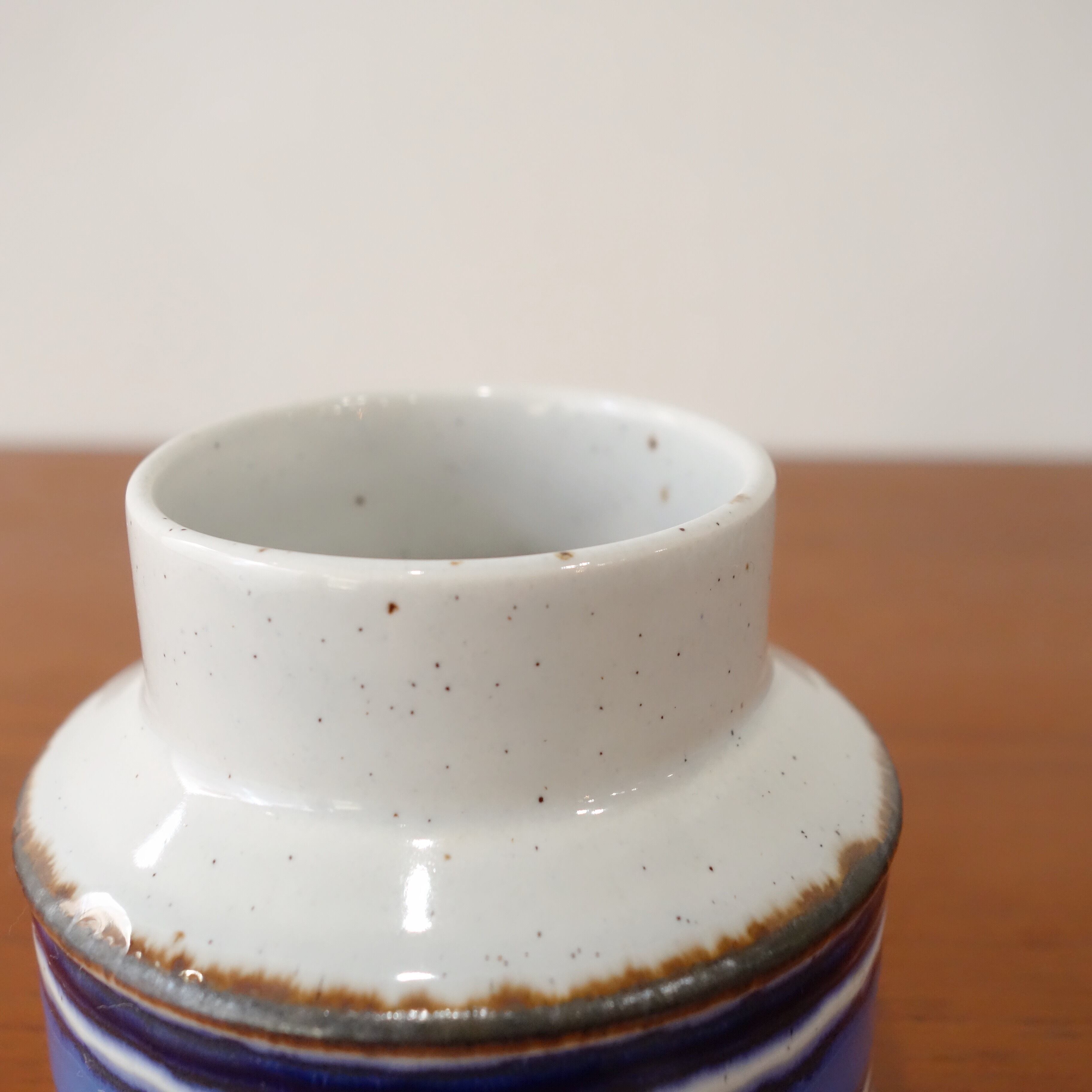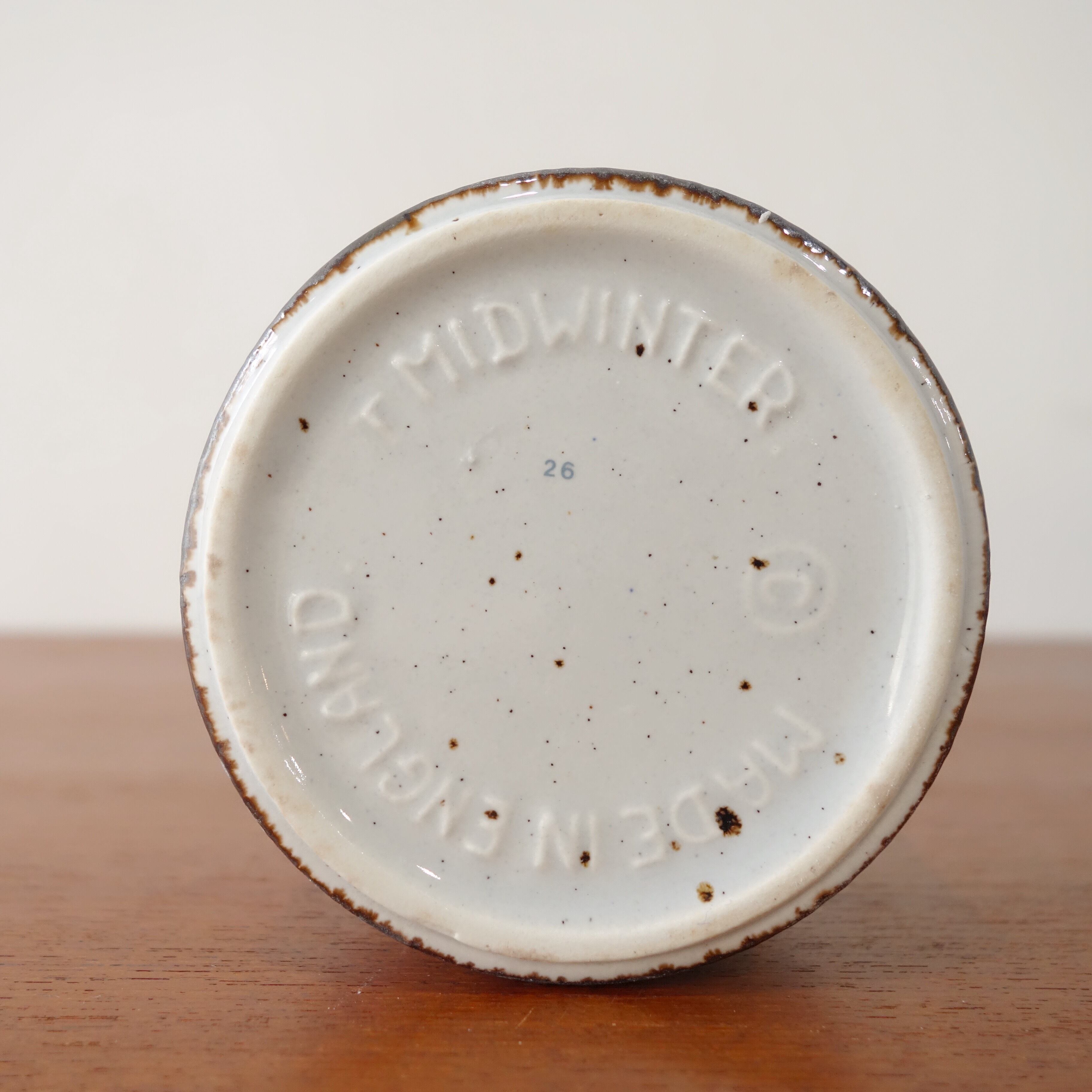 モダンなデザインでイギリス有数の陶磁器メーカーとして広く知られていきました。こちらはStonehengeと呼ばれるストーンウェアシリーズ、Eve Midwinterがデザインを手掛けた“Moon”パターンのフラワーベースです。